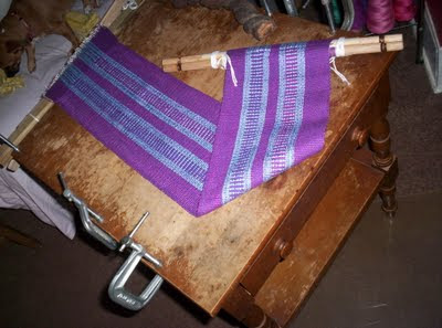 I finally figured out how to do plain wv dbl wv. Love this crappy table I got off the side of the road. It makes a great table to hook my loom up to. Nice and heavy.